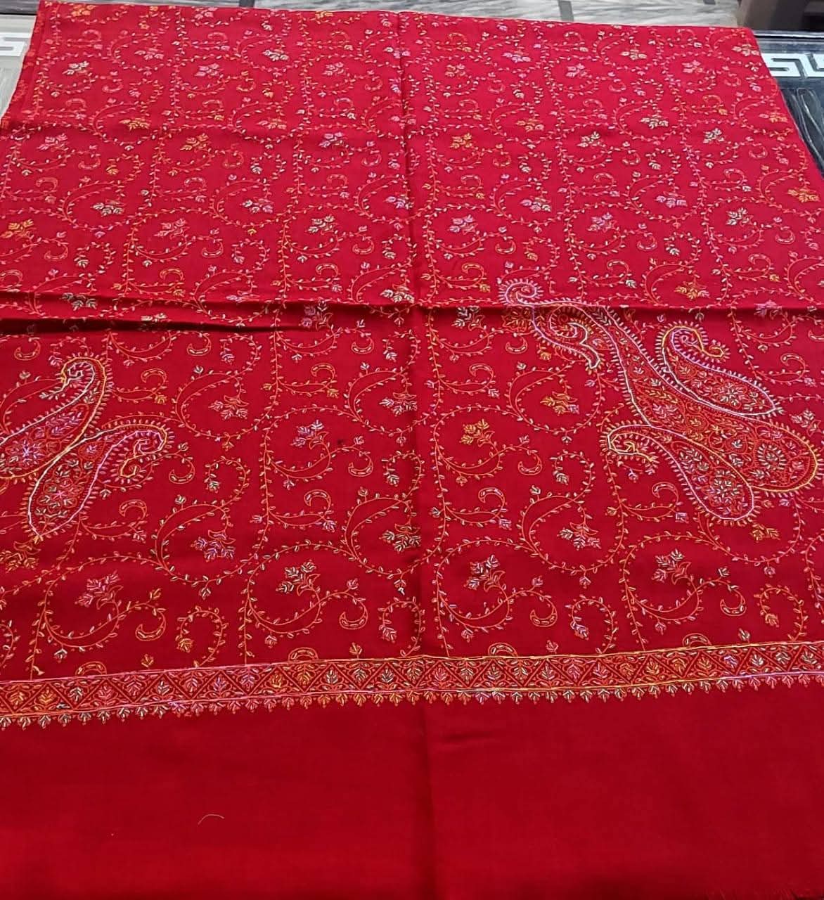 Embroidery: Delicate hand-done needle embroidery with classic Kashmiri motifs – paisleys, florals, and vines