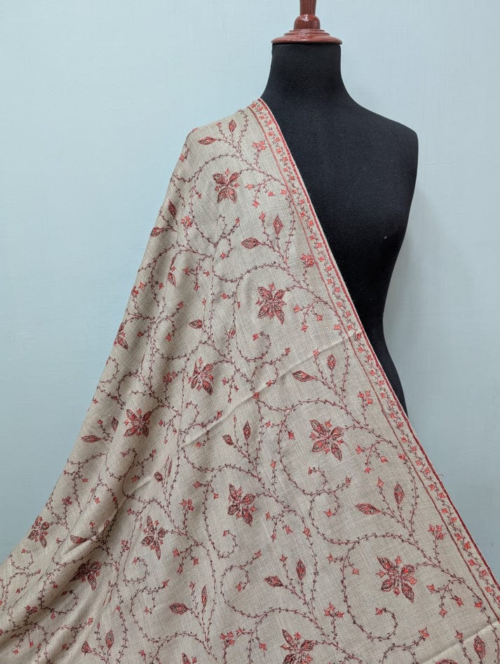 Discover the charm of timeless luxury with this Premium Pashmina Shawl, featuring fine handmade Kashmiri embroidery. Crafted from pure, ultra-soft Pashmina wool and adorned with intricate artisan detailing, this shawl is a masterpiece of elegance and tradition. Lightweight yet exceptionally warm, it drapes beautifully for both formal and casual occasions. A perfect blend of heritage craftsmanship and modern sophistication.